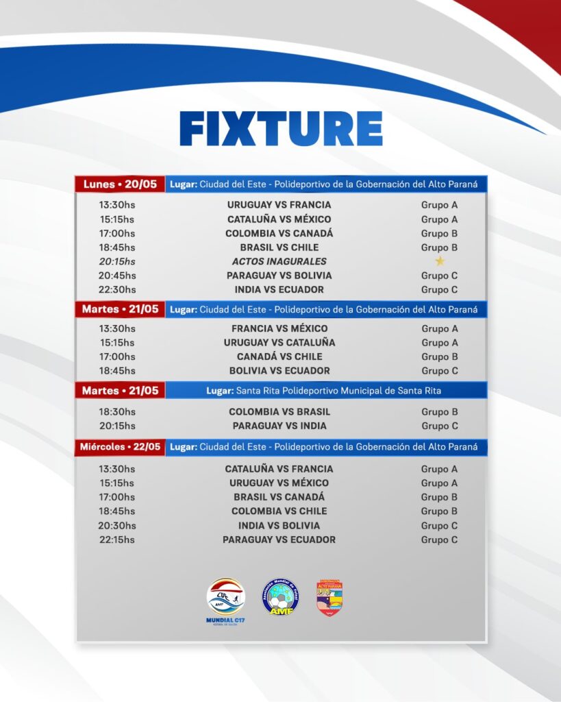 El mundial C17 de futbol de salón va cobrando forma luego de la aprobación completa del calendario de partidos.